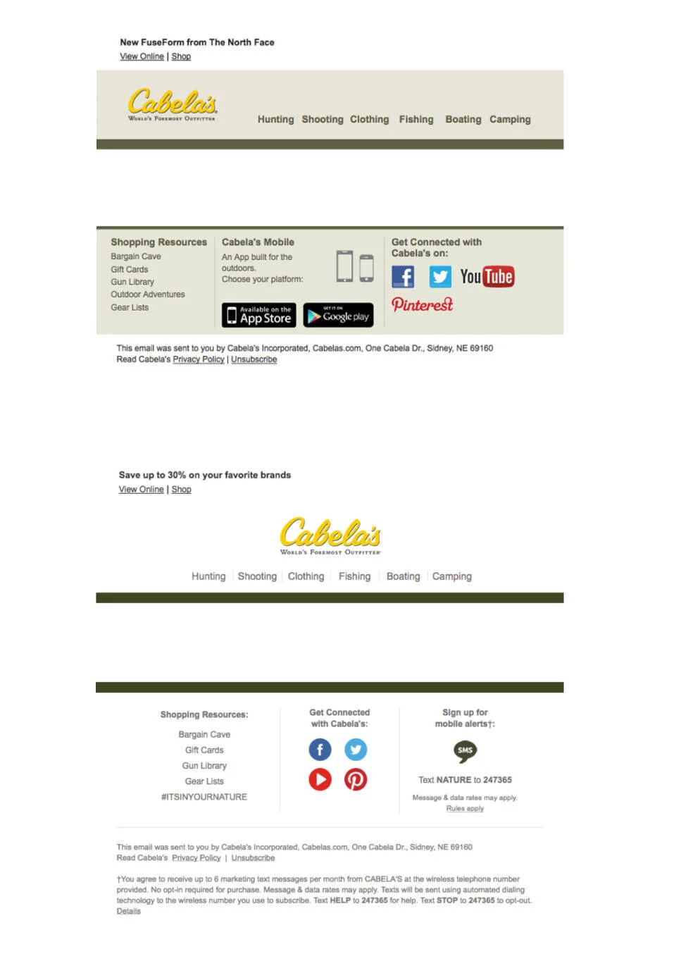 Redesigned email header templates for Cabela’s, Cabela’s Outdoor Adventures, Cabela’s Corporate Outfitter and William-Neil Associates.